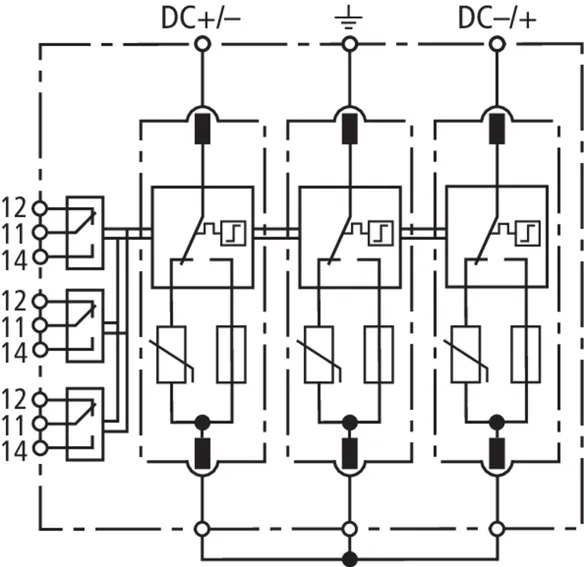 | Nennableitstoßstrom (8/20 µs) [(DC+/DC-) --> PE] (In ) | 12,5 kA |