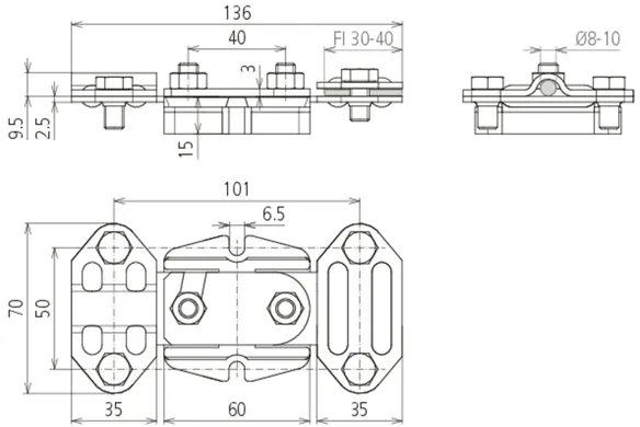 Klemmbereich Rd / Fl: 8-10 / 30-40 mm