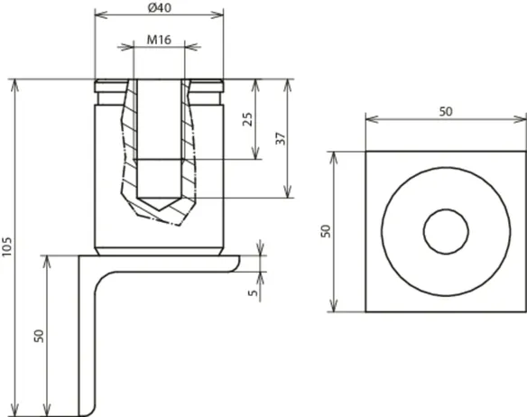 | Abmessung Winkel (l x b x t) | 50 x 50 x 5 mm |