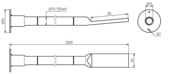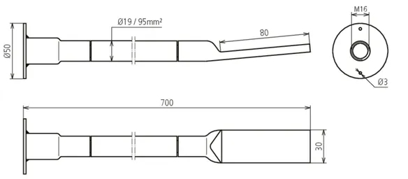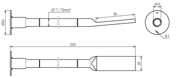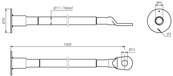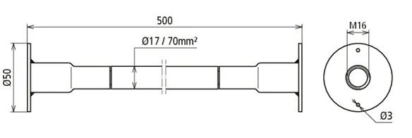 | Bohrung Kabelschuh | 13 mm für M12 und 17 mm für M16 |