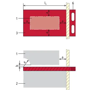 Die Hilfsmarkierung ist eine gepunktete Linie mit mindestens 525 mm Abstand vom hinteren Plattenrand. Diese Markierung darf beim Auflegen der isolierenden Schutzplatte nicht übergriffen werden.