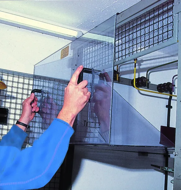 Der Schutz beim Einbringen und Herausnehmen muss durch die Schutzvorrichtung der Anlage gegeben sein.