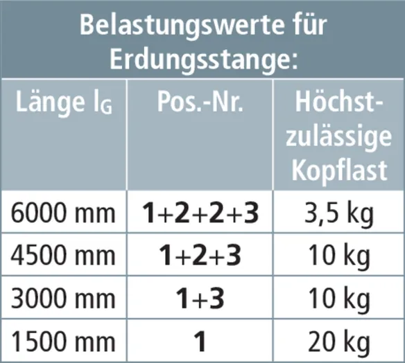 | Höchstzulässige Kopflast (lG max / IG min ) | 10 / 20 kg |