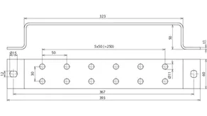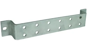 Erdungsschienen zum Anschrauben an Stahlkonstruktionen, Abstand der Bohrungen 50 mm.
