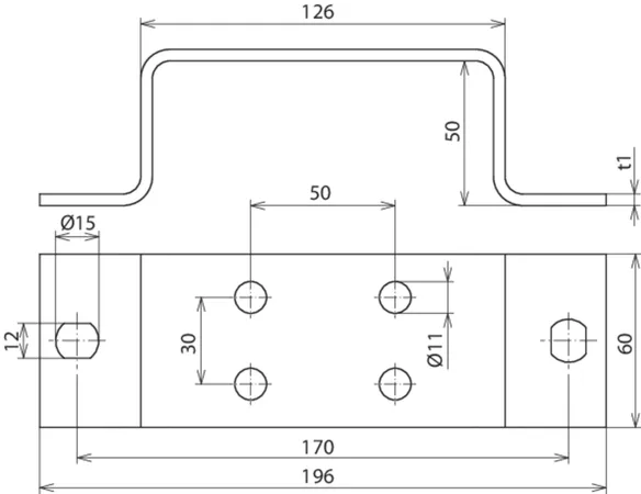 Abmessung (l x b x t1) 196 x 60 x 4 mm