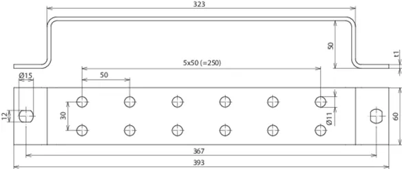 Abmessung (l x b x t1) 393 x 60 x 5 mm