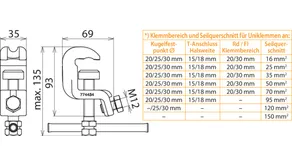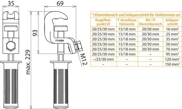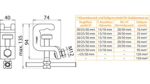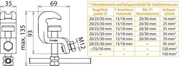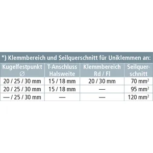 | *) siehe Tabelle Klemmbereich und max. Seilquerschnitt für Universalklemmen | |