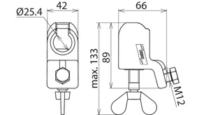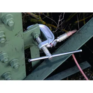 - Zum erdseitigen Anschluss an Kugelfestpunkte, T-Anschlussbolzen, Rund- und Flachleitern, Anschlussstücke und Flachprofile