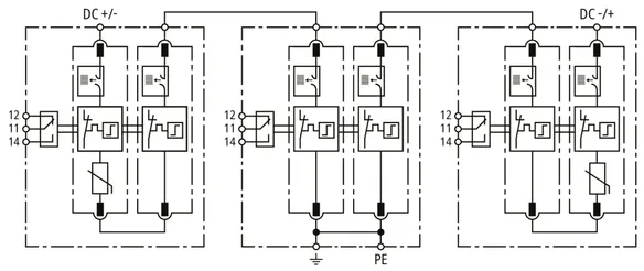 | Schutzpegel [(DC+/DC-) --> PE] (UP ) | < 2,5 kV |