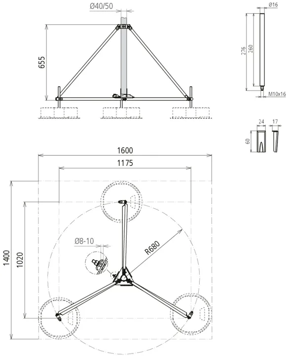 | Anzahl Betonsockel | 3-12 Stück à 17 kg |