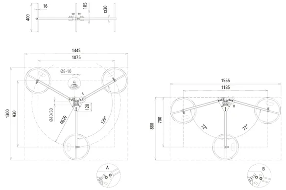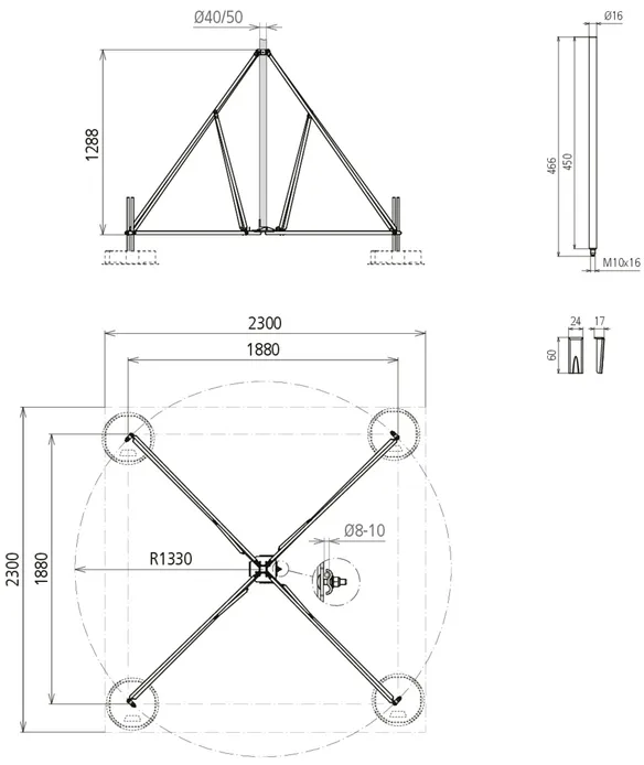 | Platzbedarf Stativ | 1880 x 1880 mm |