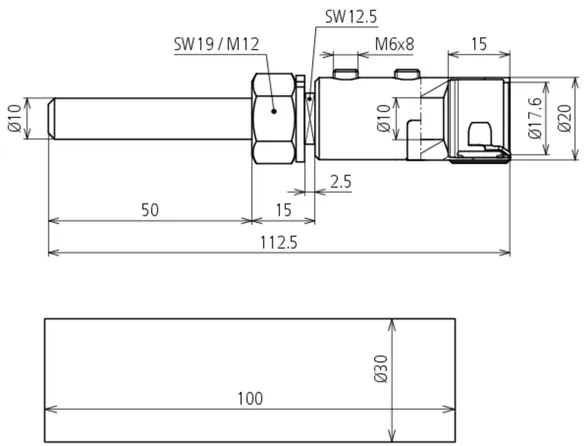 | Anschluss | Bolzen Ø10 mm, L 50 mm |