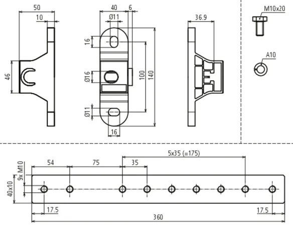 | Anschluss Rd/Fl | 1x Flachleiter 30/40 mm oder 1x Rundleiter 10 mm |