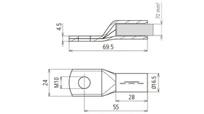 | Anschluss Kabelschuh | 1x flexible / starre Leiter 16-95 mm² |