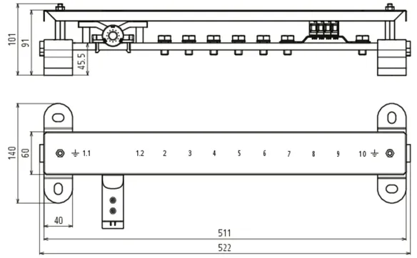 | Anschluss Kabelschuh | 9x flexible / starre Leiter 16-95 mm² |