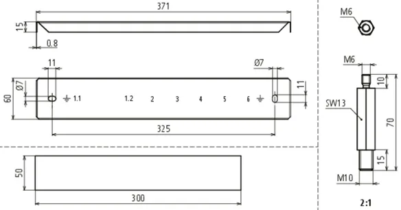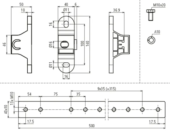 | Max. Kurzschlussstrom (AC 50 Hz / DC / 5 s) NIRO (V4A) 30x3,5 mm / 40x5 mm | 750 A / T4 |