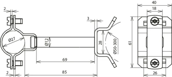 mit Distanzstück 85 mm zur Befestigung an Rohren z.B.