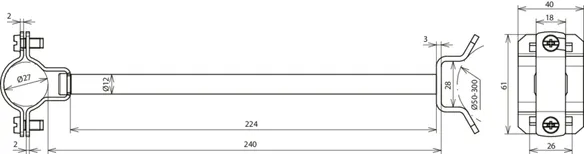 mit Distanzstück 240 mm zur Befestigung an Rohren z.B.
