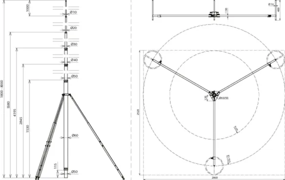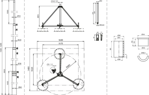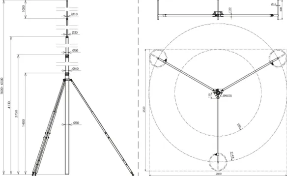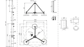 Fangstangen freistehend mit klappbarem Drei- oder Vierbeinstativ zum Schutz von größeren Dachaufbauten und Anpassung an die Dachneigung bis max. 10°.