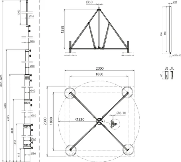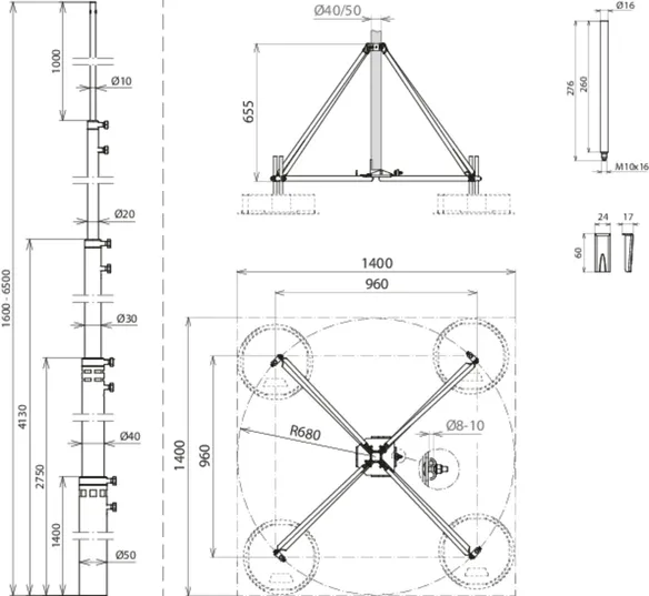 Fangmast (Ø Länge) 50/60/50/40/30/20-7000 mm