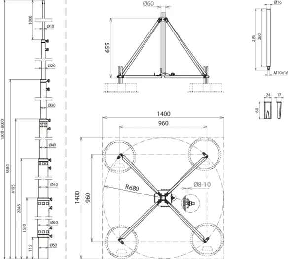 Teleskopierbare Fangstangen freistehend bis 8 m