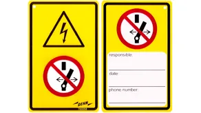 Warnschild: „Achtung Spannung – Schalten verboten“