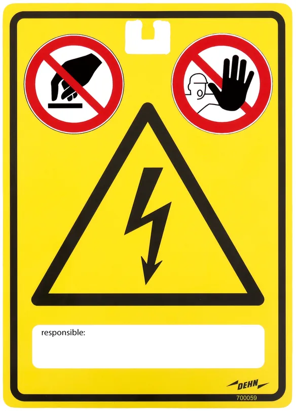 Warnschild: „Achtung Spannung – Berühren sowie Zutritt für Unbefugte verboten“
