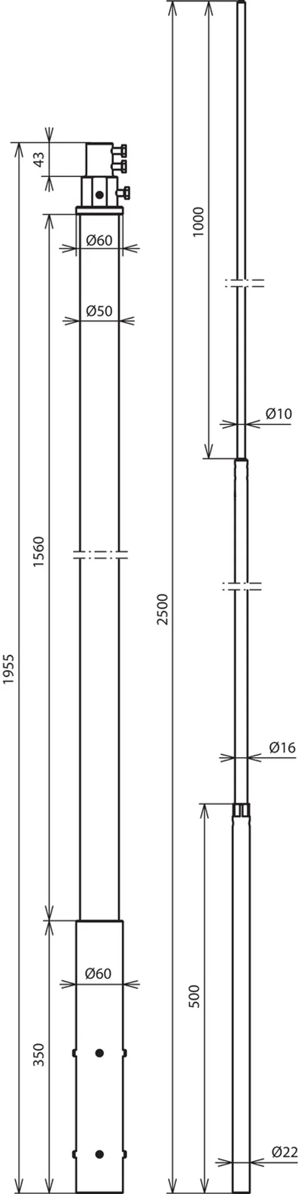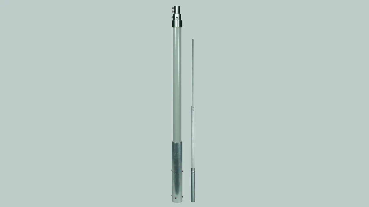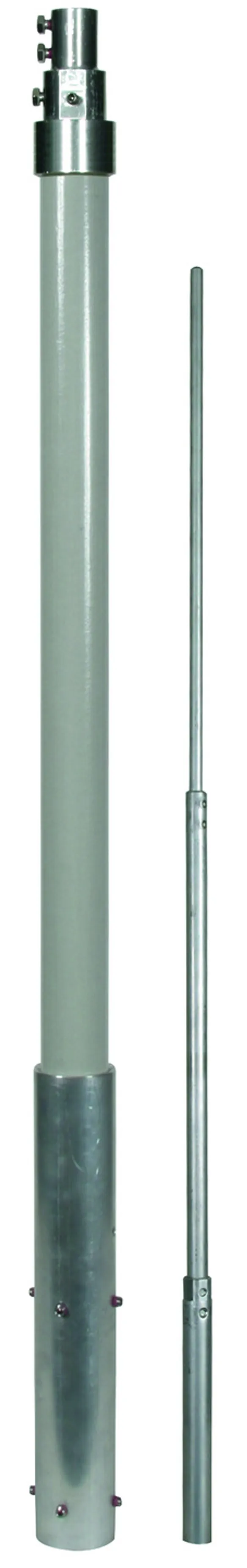 Stützrohr für HVI Leitung mit Fangstange 2500mm GFK/Al Stützrohre GFK/Al mit innenliegendem Endverschluss für die HVI Leitung zum Einhalten des Trennungsabstand zu elektrisch leitenden Teilen nach DIN EN 62305 (VDE 0185-305-3). Die Stützrohre sind nach Eurocode 1 (DIN EN 1991-1-4 + DIN EN 1991-1-4/NA) für eine max. Böenwindgeschwindigkeit von 140 km/h dimensioniert. Isolierstrecke aus glasfaserverstärktem Kunststoff GFK Materialfaktor km = 0,7 Farbe lichtgrau, UV-stabilisiert 1-teilig kombiniert mit Fangspitze Ø10 mm Länge 2500 mm aus Al