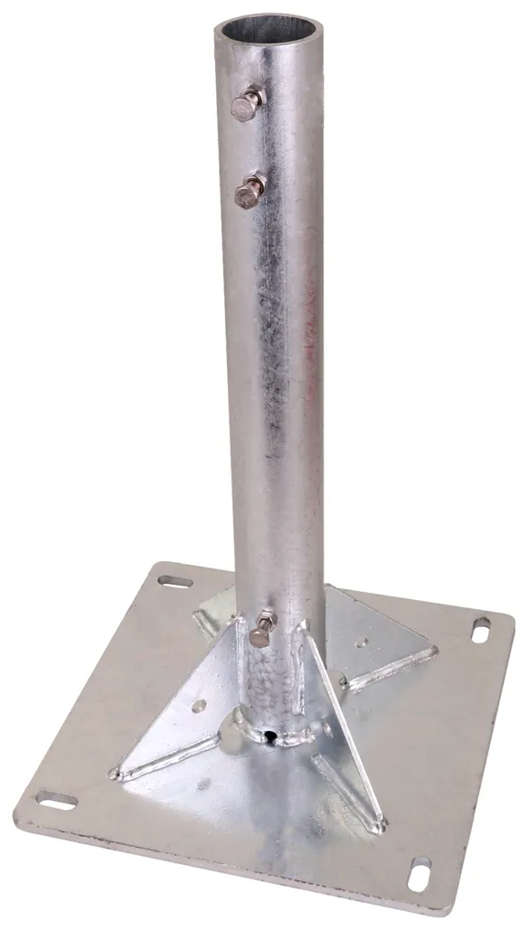 Zum Errichten mittels Gegenplatte an Gitterlaufbahnen und Stahlträgern oder sonstige Konstruktionen. Das Adapterset für Fangstangen D40 ist im Zubehör separat verfügbar.
